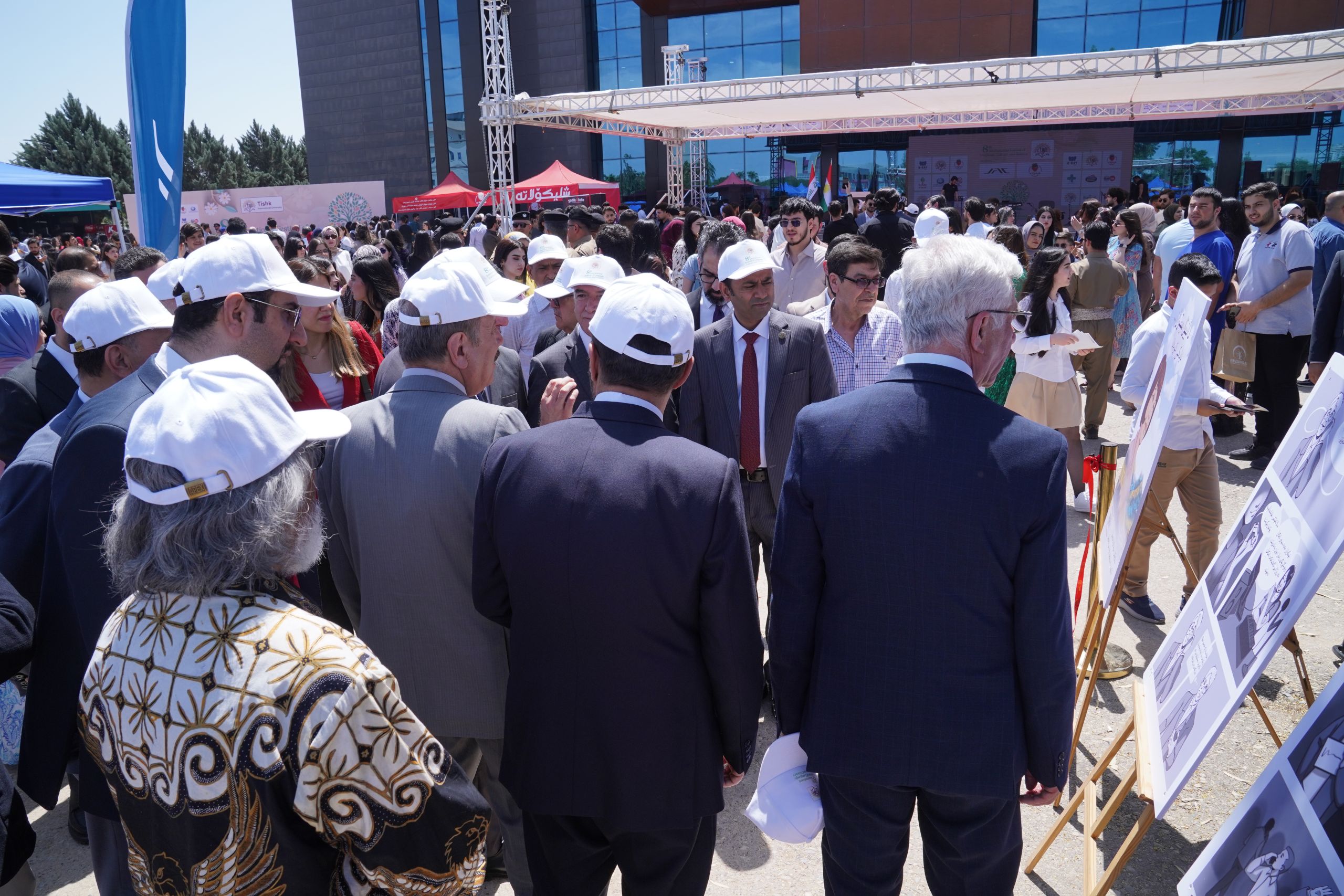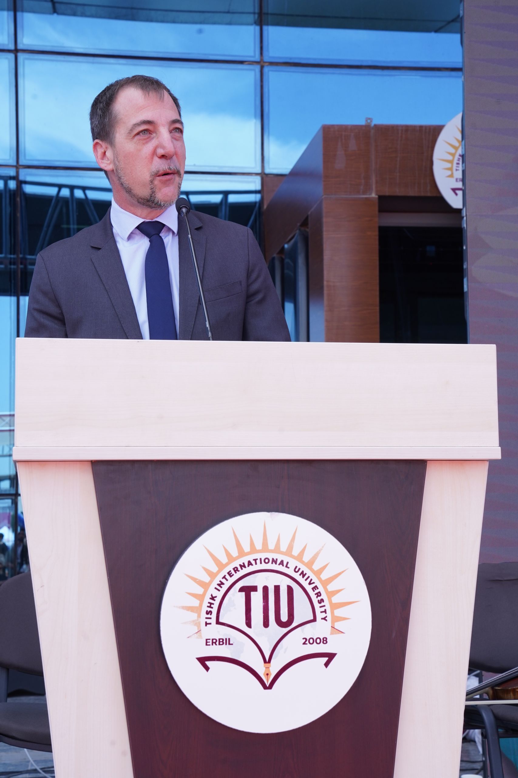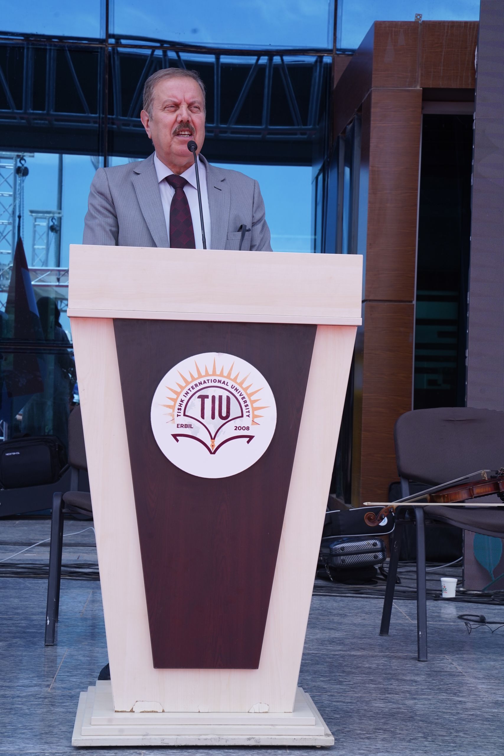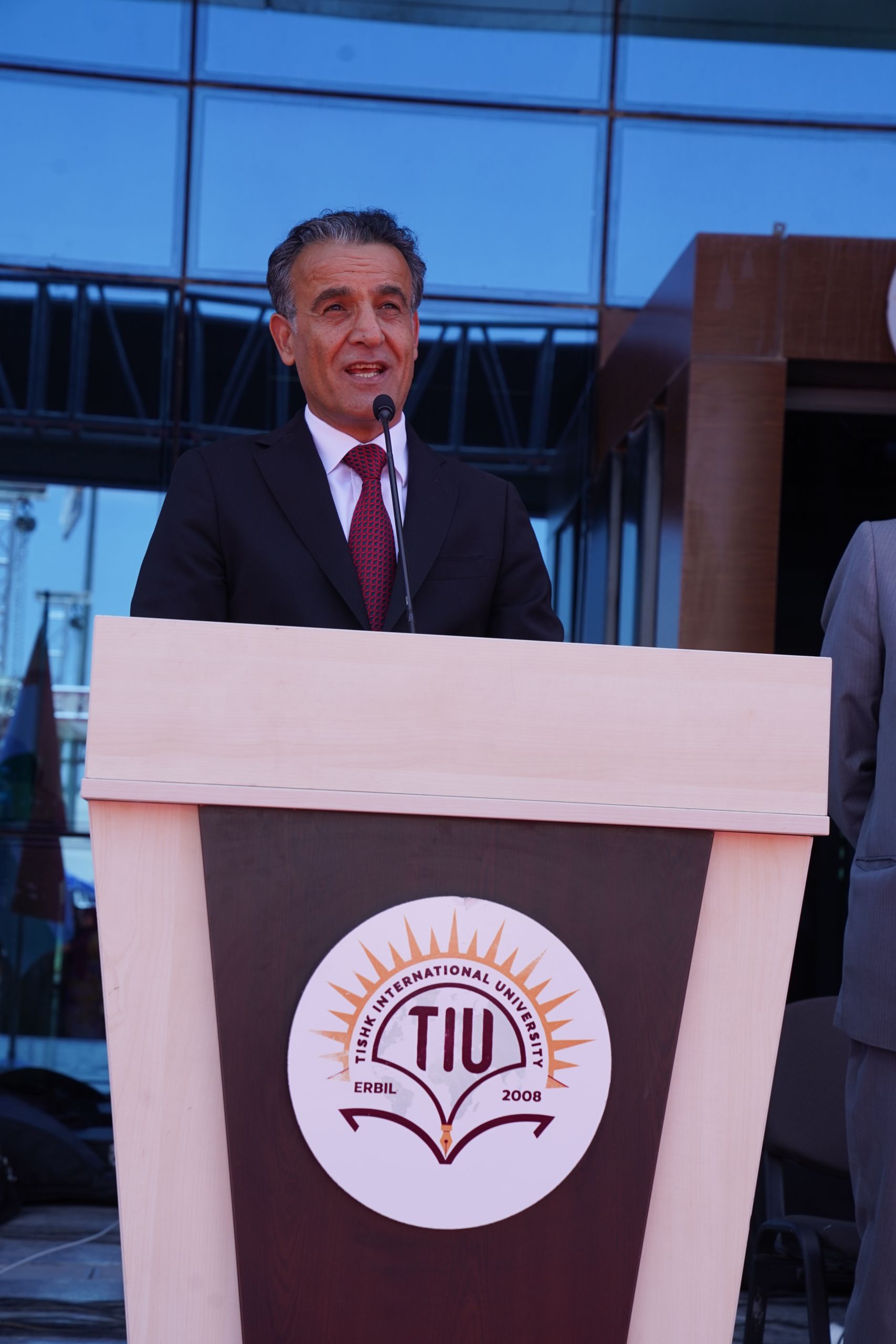 Distinguished guests addressed the audience with inspiring speeches, including Dr. Idris Hadi, Head of the Board of Trustees; Prof. Dr. Sultan Abu-Orabi, President of Tishk International University; the Consulate General of France in Erbil; and Dr. Aram Muhammed Qadr, Minister of Higher Education. Their remarks emphasized the importance of international cooperation, academic innovation, and the role of global citizenship in shaping a better future.