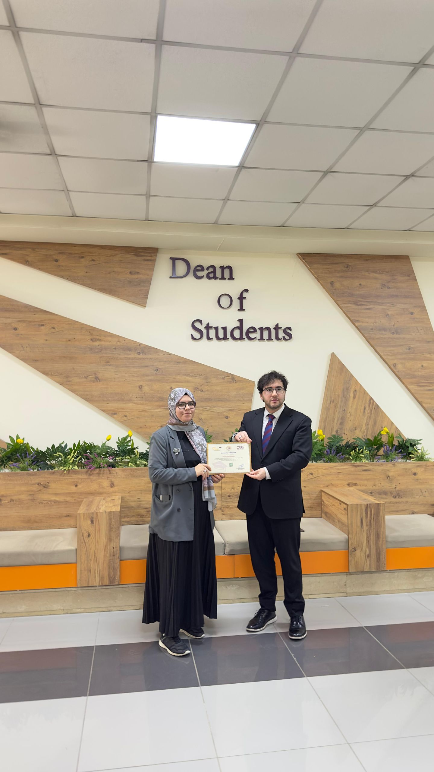The Dean of Students at Tishk International University proudly recognized the hard work and contributions of the following volunteer students: