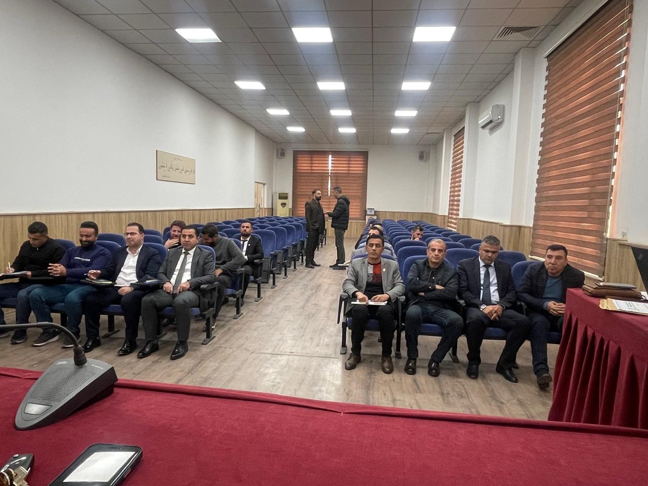 The meeting was convened as part of the Federation’s regular activities to review and approve its annual sports plan and programs for Iraqi universities. During the session, extensive discussions were held regarding the organization of university sports activities for the upcoming period, with particular emphasis on the proposed schedules, locations, and logistical arrangements of various sports tournaments.