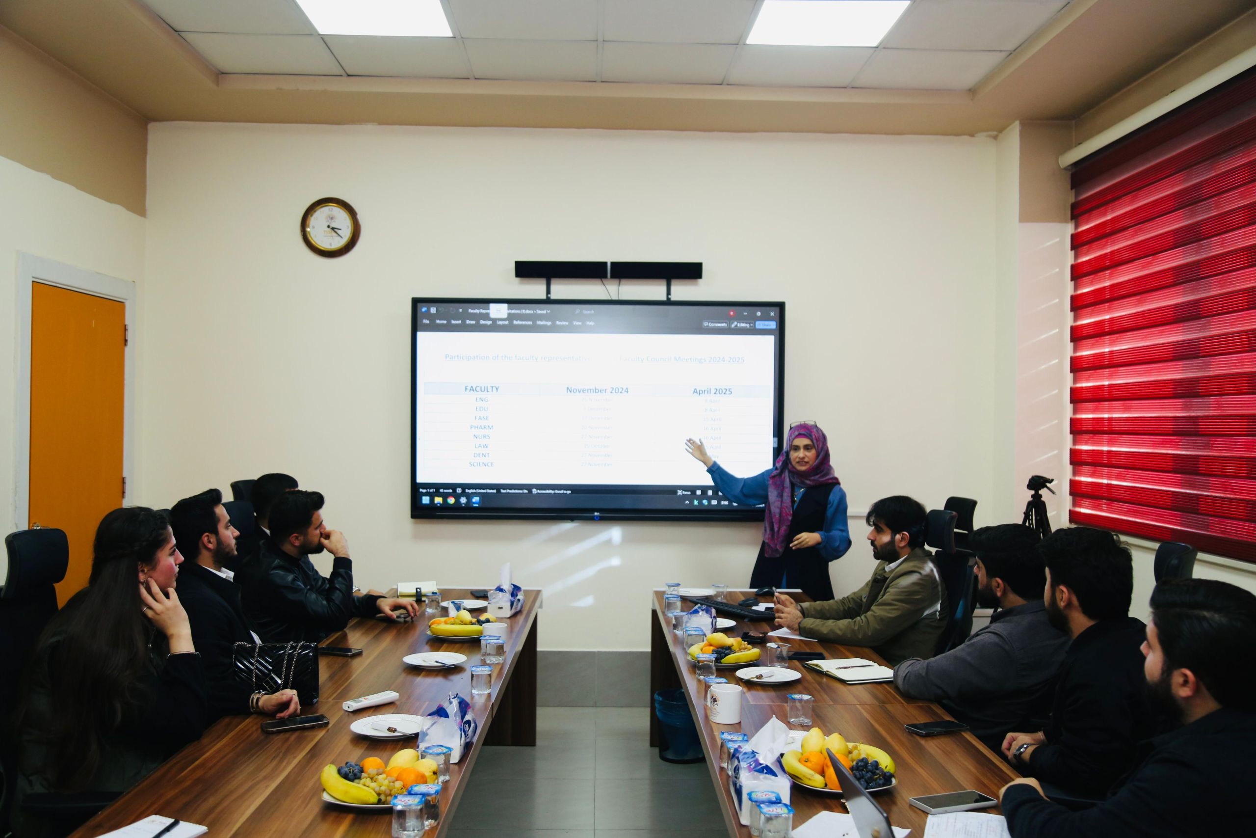 The meeting also saw the active participation of Prof. Dr. Jaafar Hussien, Director of the International Relations Office (IRO), and Dr. Maqsood Saadi, Coordinator of the IRO. Their input focused on the ongoing student exchange program, enhancing TIU’s global academic collaborations. Moreover, the Faculty Student Representatives presented their feedback, addressing various academic and administrative aspects at TIU, including: