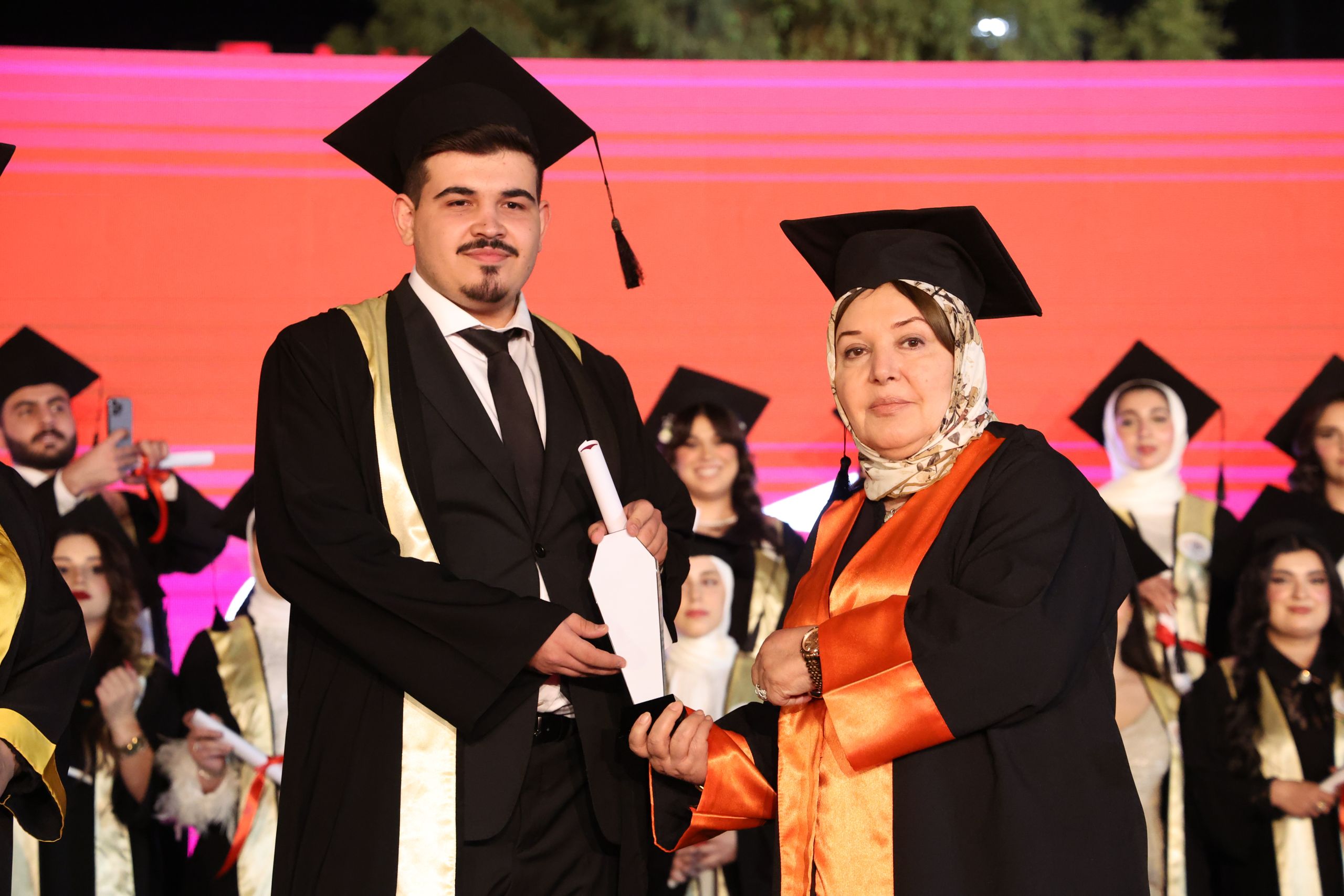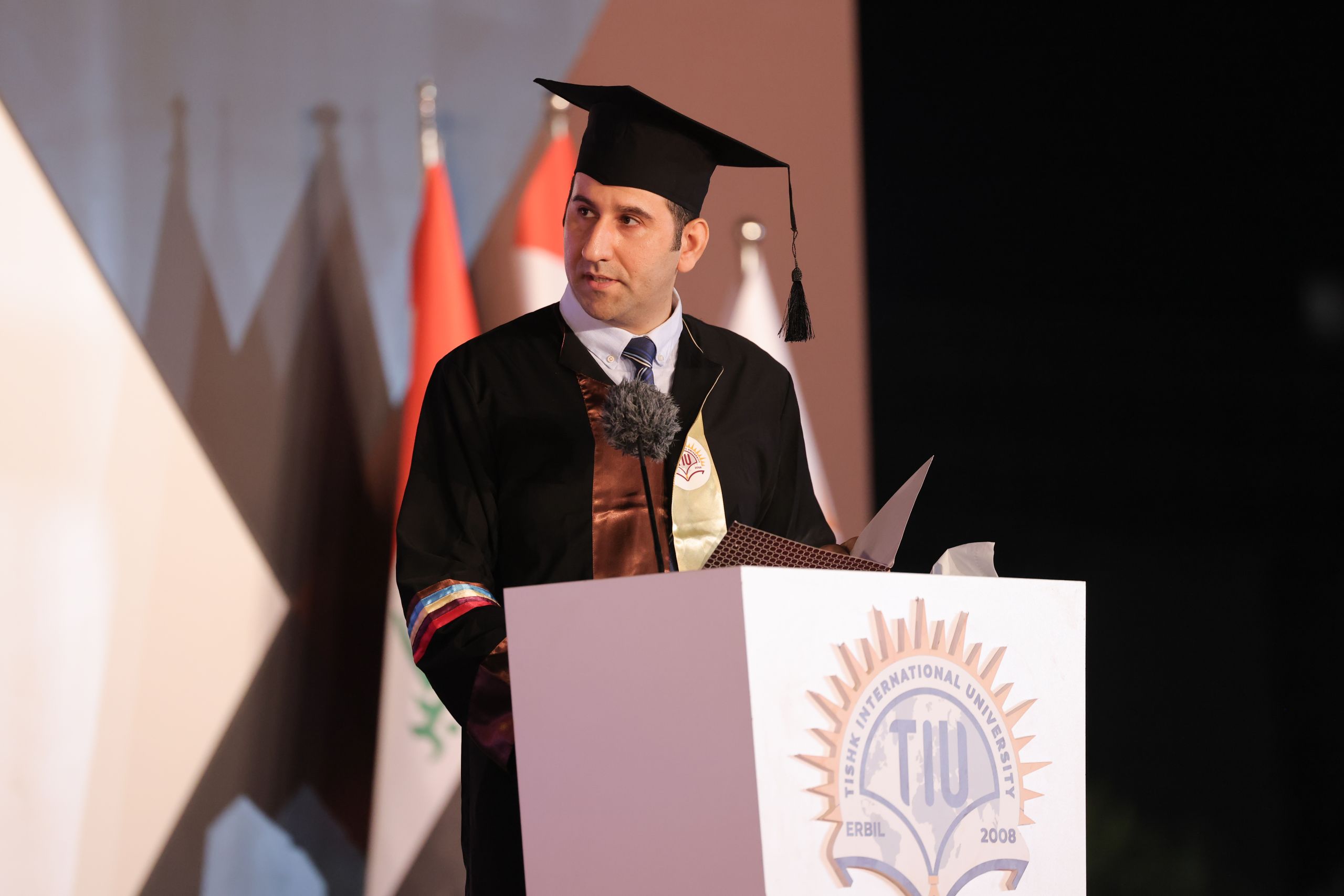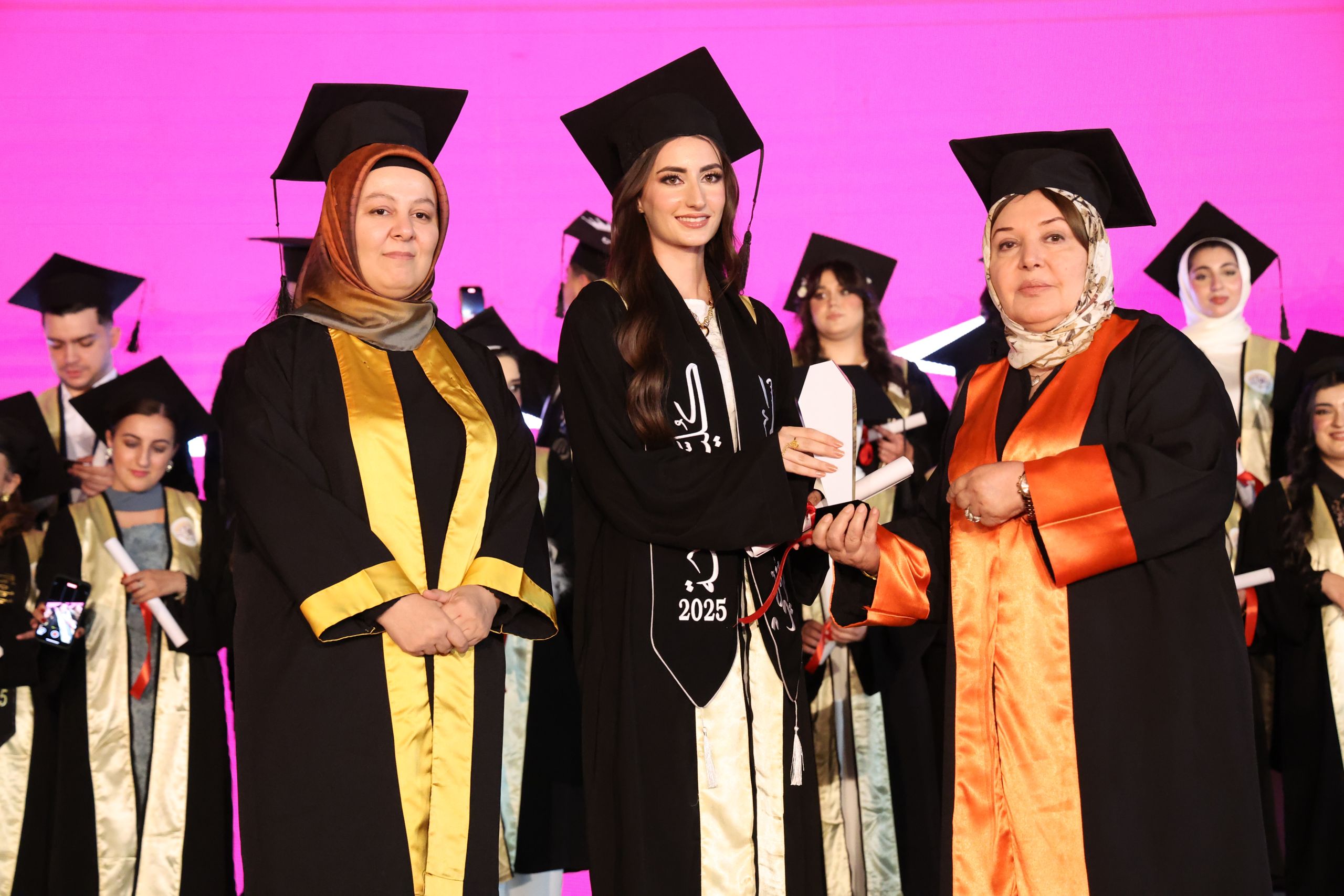 Among the highlights of the ceremony were the speeches delivered by the university’s top achievers, Ms. Chra Idris Hadi from the English Language Teaching Department and Mr. Ayoob Mohammed Othman from the Business and Management Department. Both graduates achieved the highest GPA at the university and represented their fellow students with messages reflecting on their academic journeys and future aspirations.