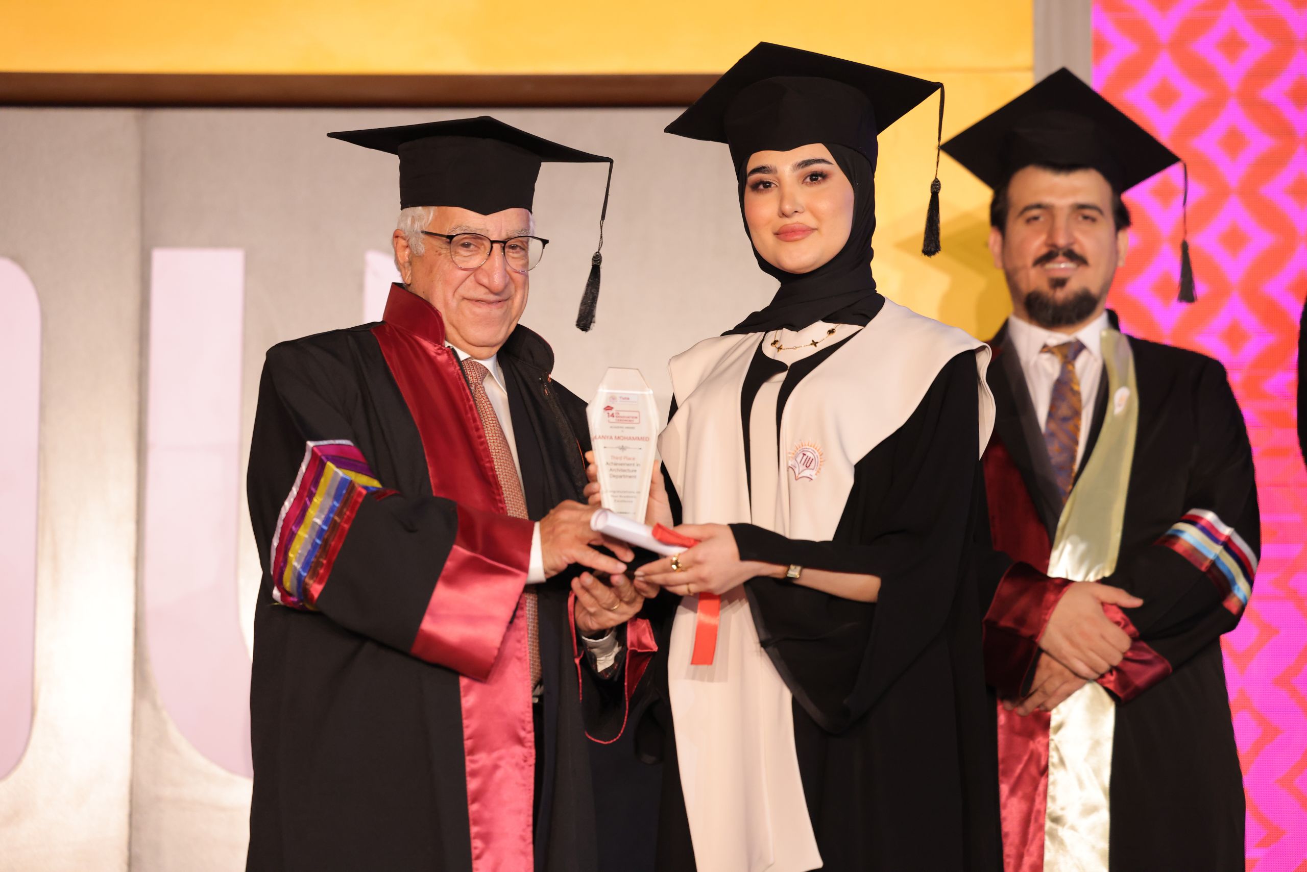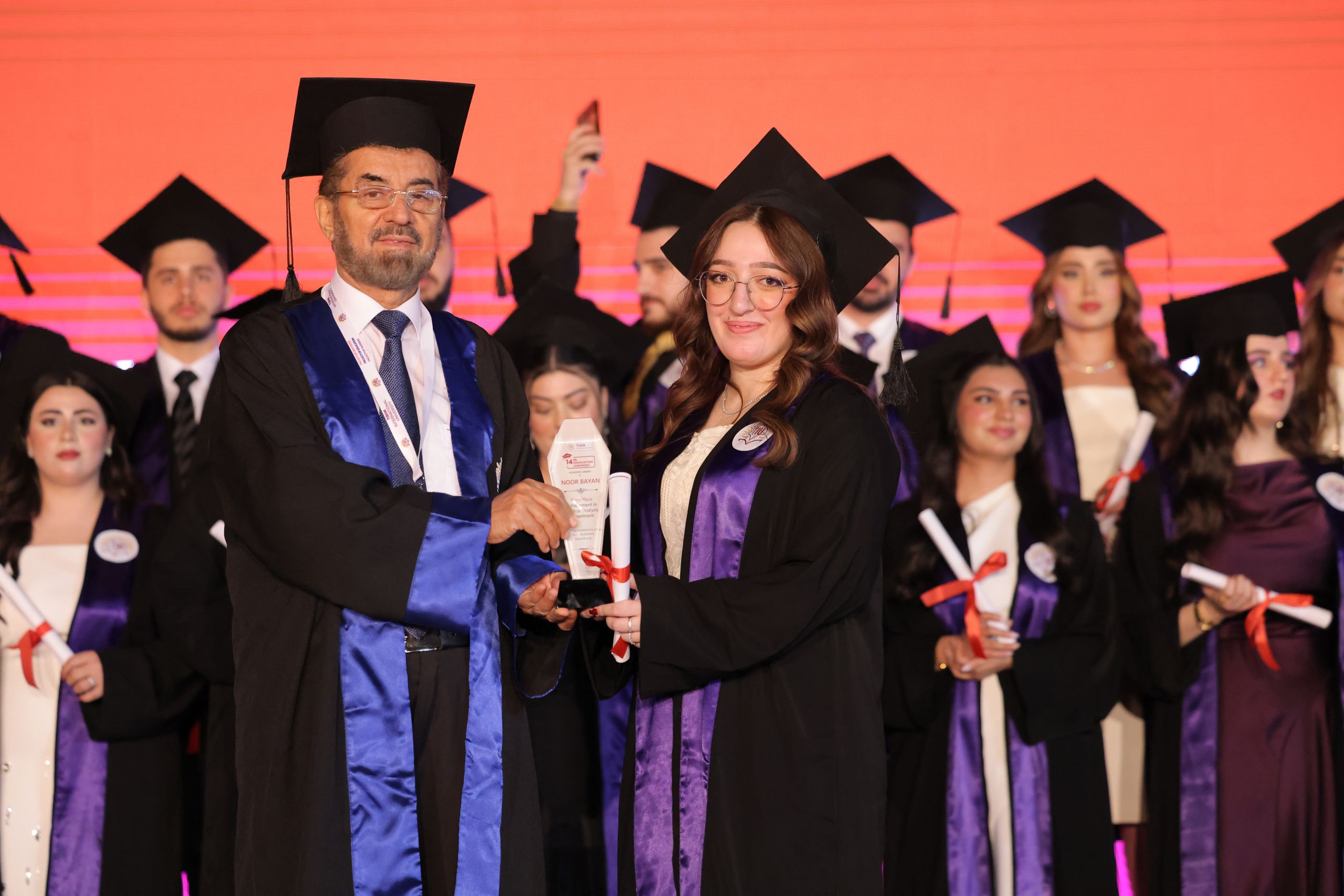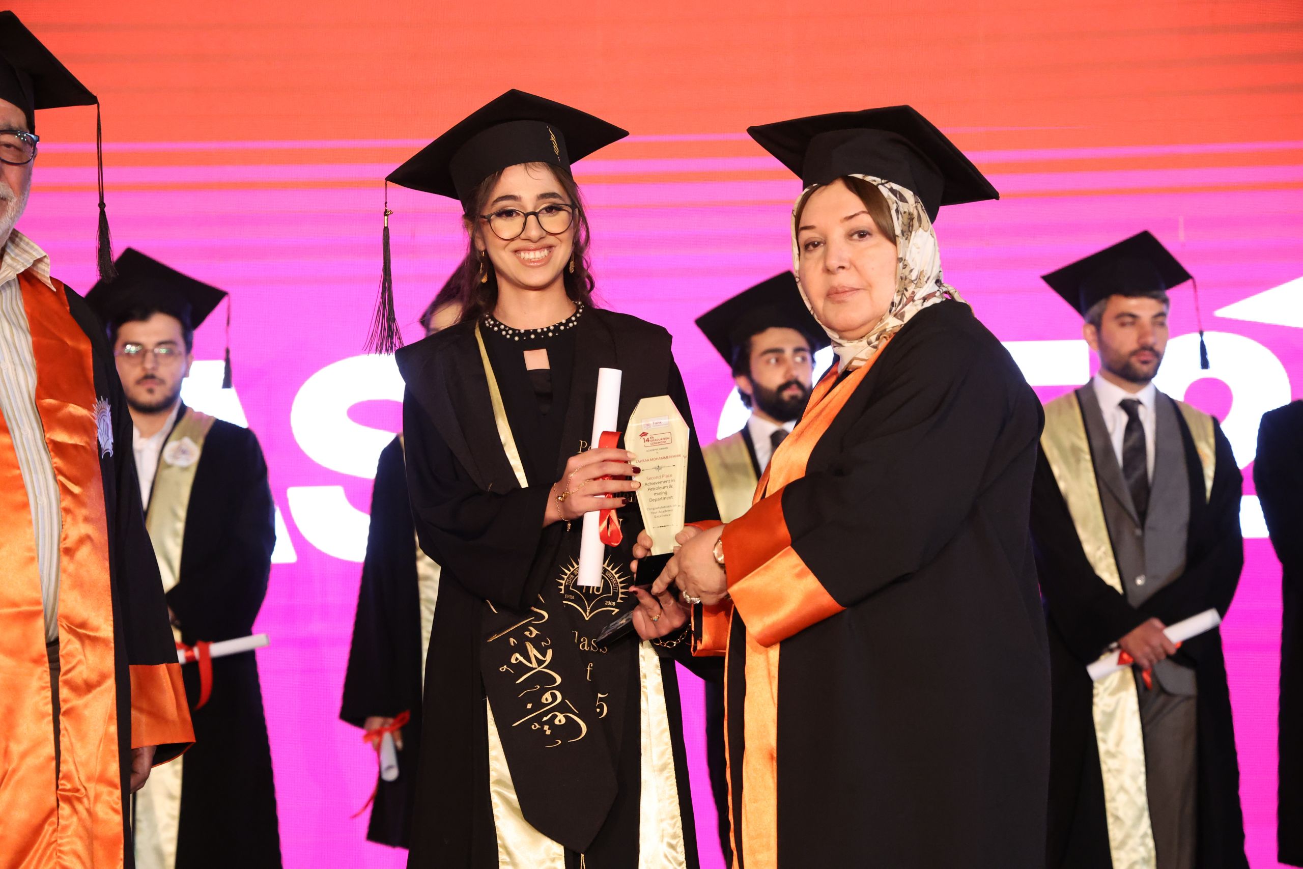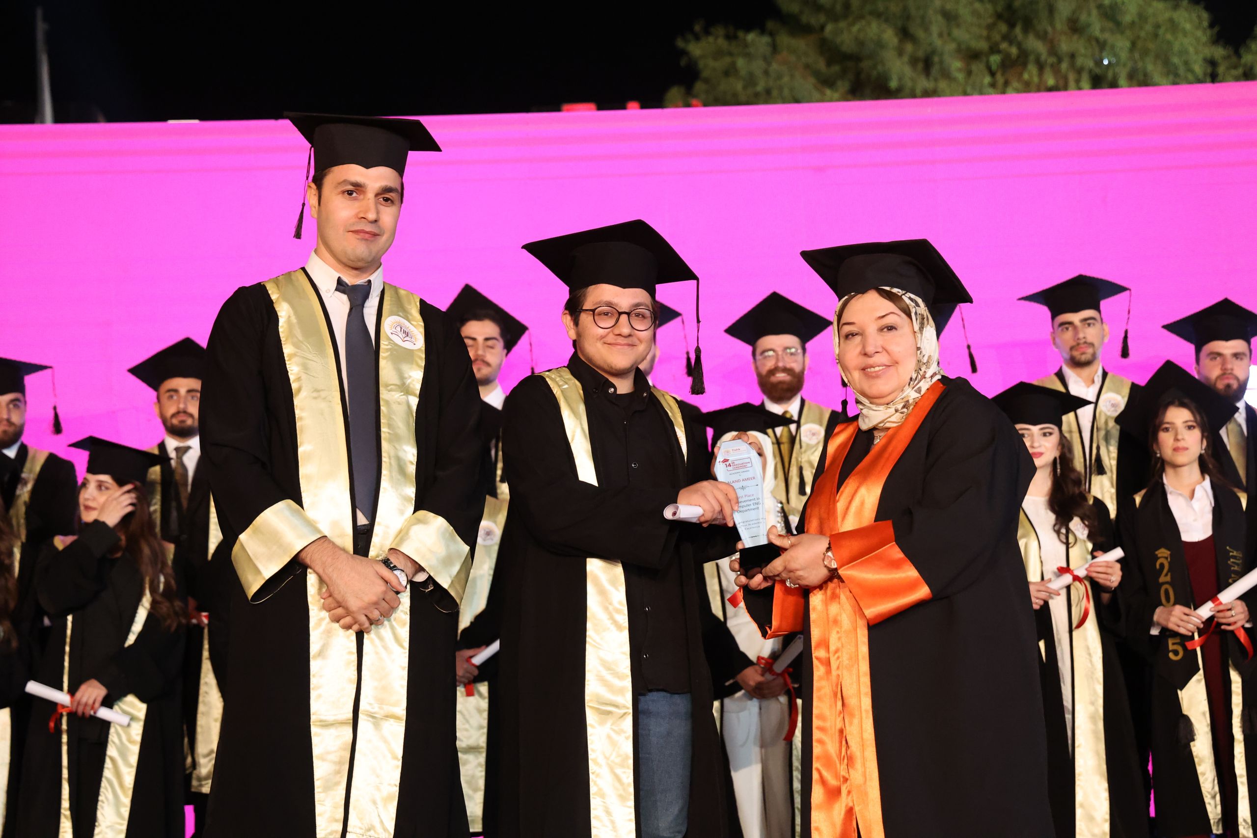 Among the highlights of the ceremony were the speeches delivered by the university’s top achievers, Ms. Chra Idris Hadi from the English Language Teaching Department and Mr. Ayoob Mohammed Othman from the Business and Management Department. Both graduates achieved the highest GPA at the university and represented their fellow students with messages reflecting on their academic journeys and future aspirations.