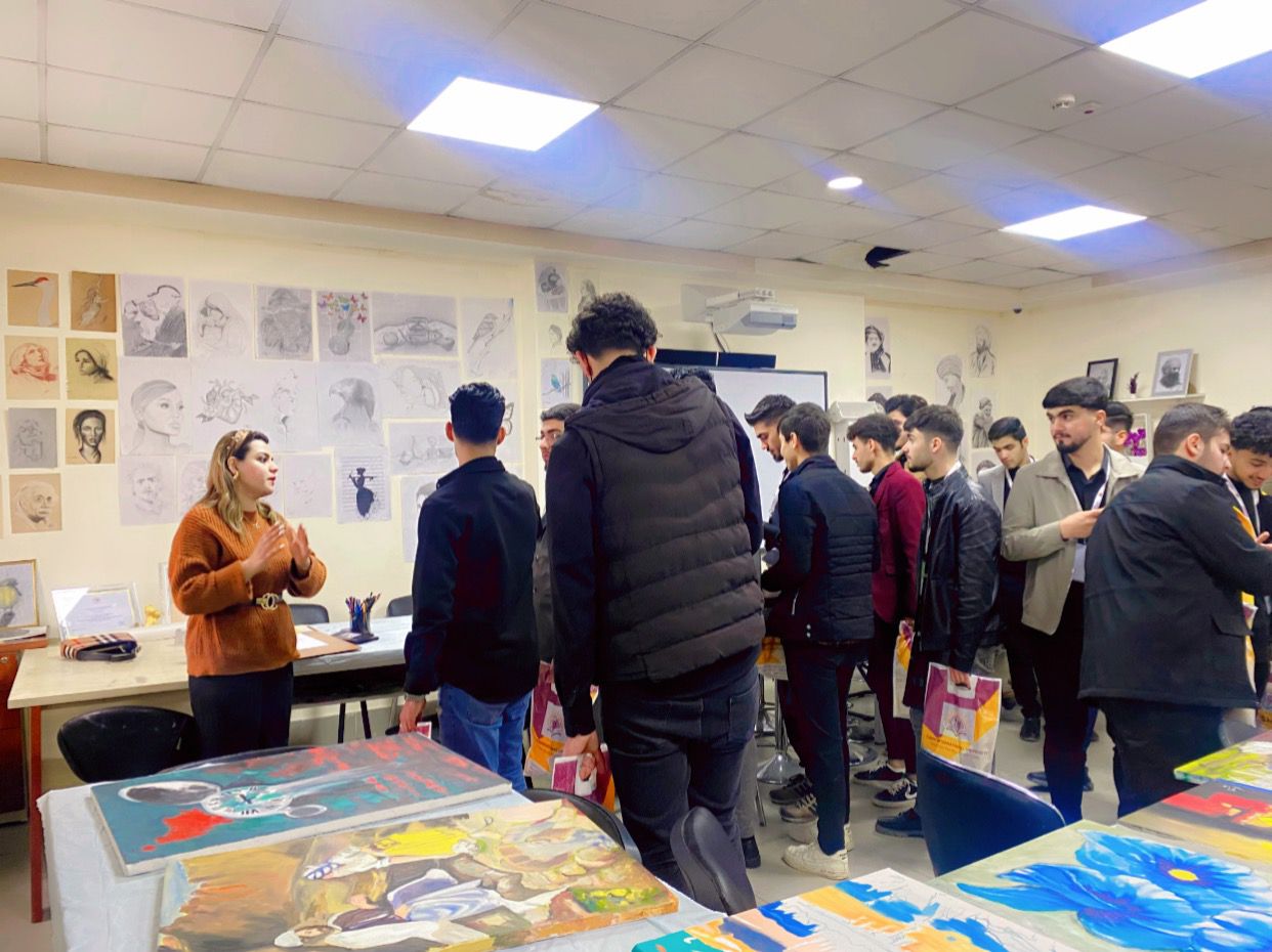 The Drawing Club at Tishk International University (TIU) organized an exhibition for high school students who visited the university during the Visit Your Future event. The exhibition was officially opened in the club hall on February 18th, 2024. High school students who attend TIU will have the opportunity to engage in social activities in addition to their academic studies, and they will be able to participate in activities that allow them to cultivate their hobbies during their free time. Tishk International University promotes the importance of this issue in order to enable students to enhance their abilities in a variety of ways.